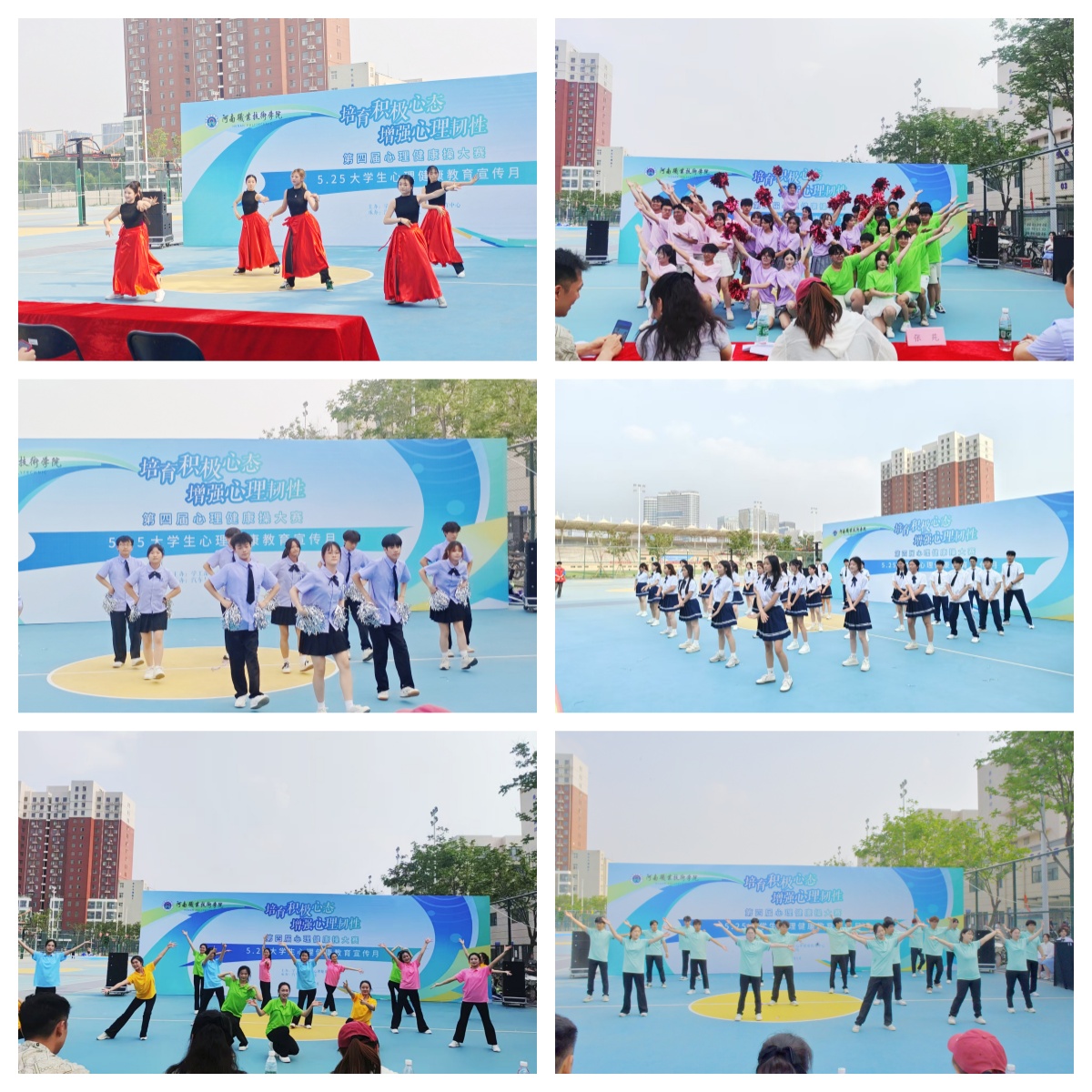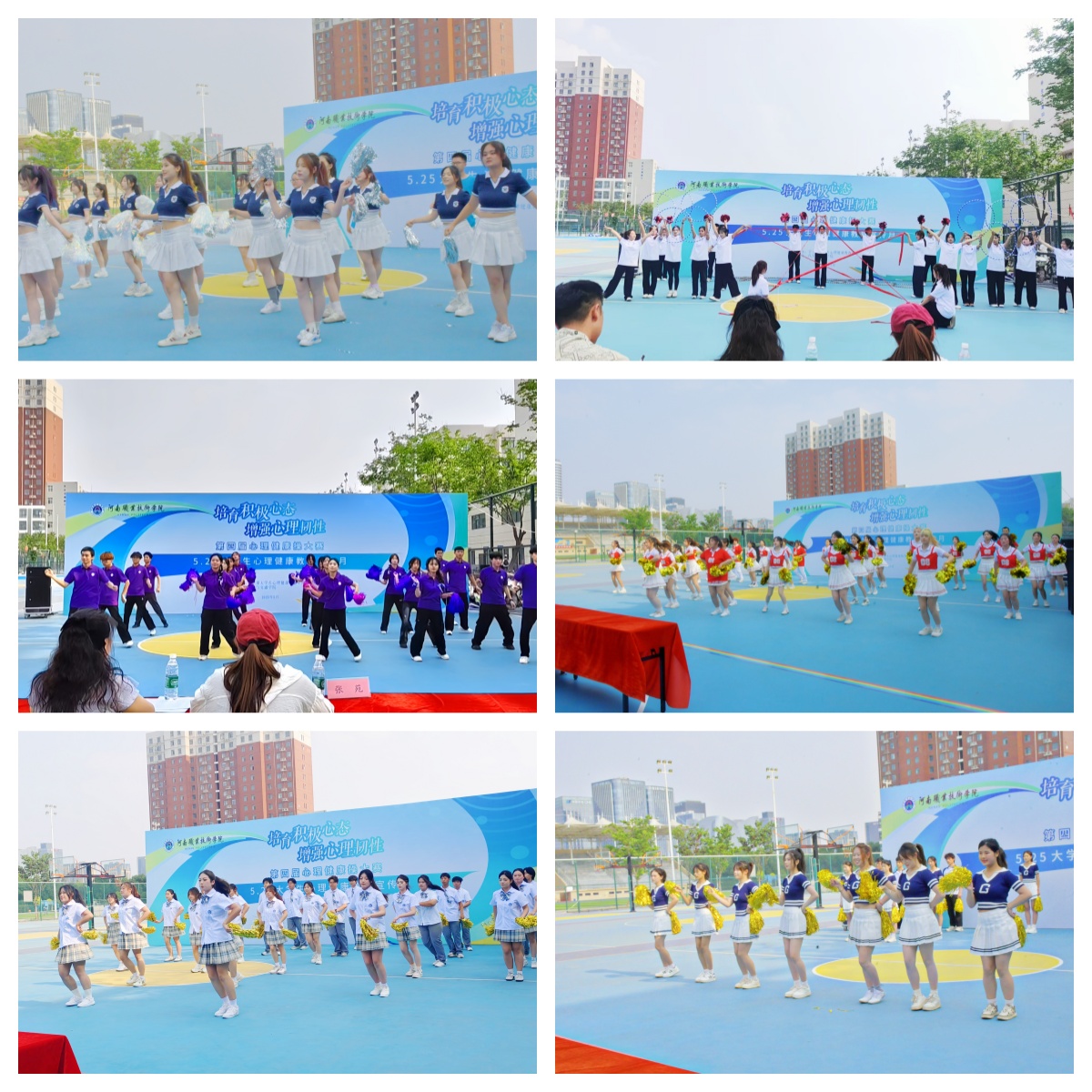 5月29日下午,我校第四届心理健康操大赛在校篮球场热烈开赛。本次活动由党委学生工作部主办、汽车与交通学院承办,党委学生工作部部长宋东方、副部长童俊艳、各二级心理健康教育工作站站长、副站长、大学生心理健康教育中心教师及11支代表队约400名师生齐聚赛场,以青春之姿共赴这场心灵与律动交融的盛会。